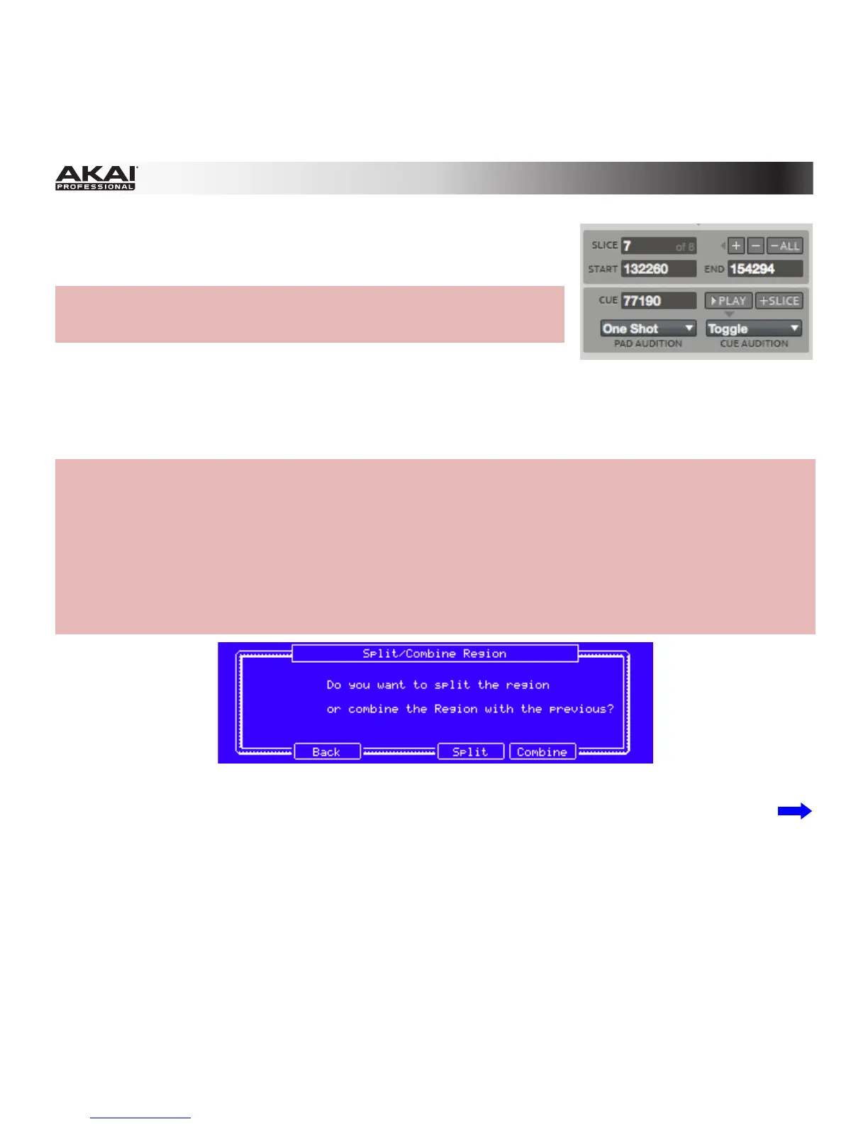 The Split/Combine Region window in Sample Edit Mode in the MPC hardware display.