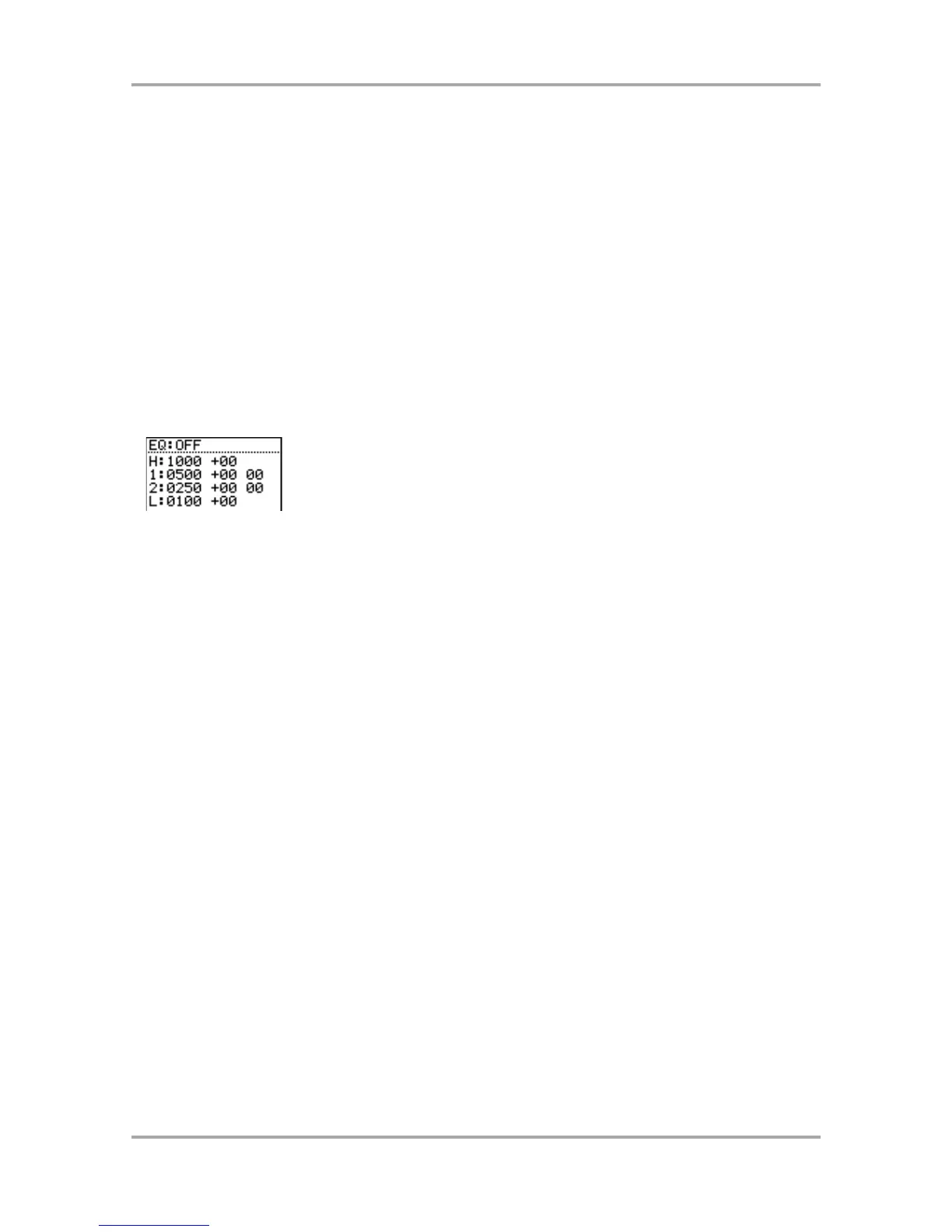 You can set the frequency and the gain of the equalizers for high frequency (H) and low frequency (L). You can