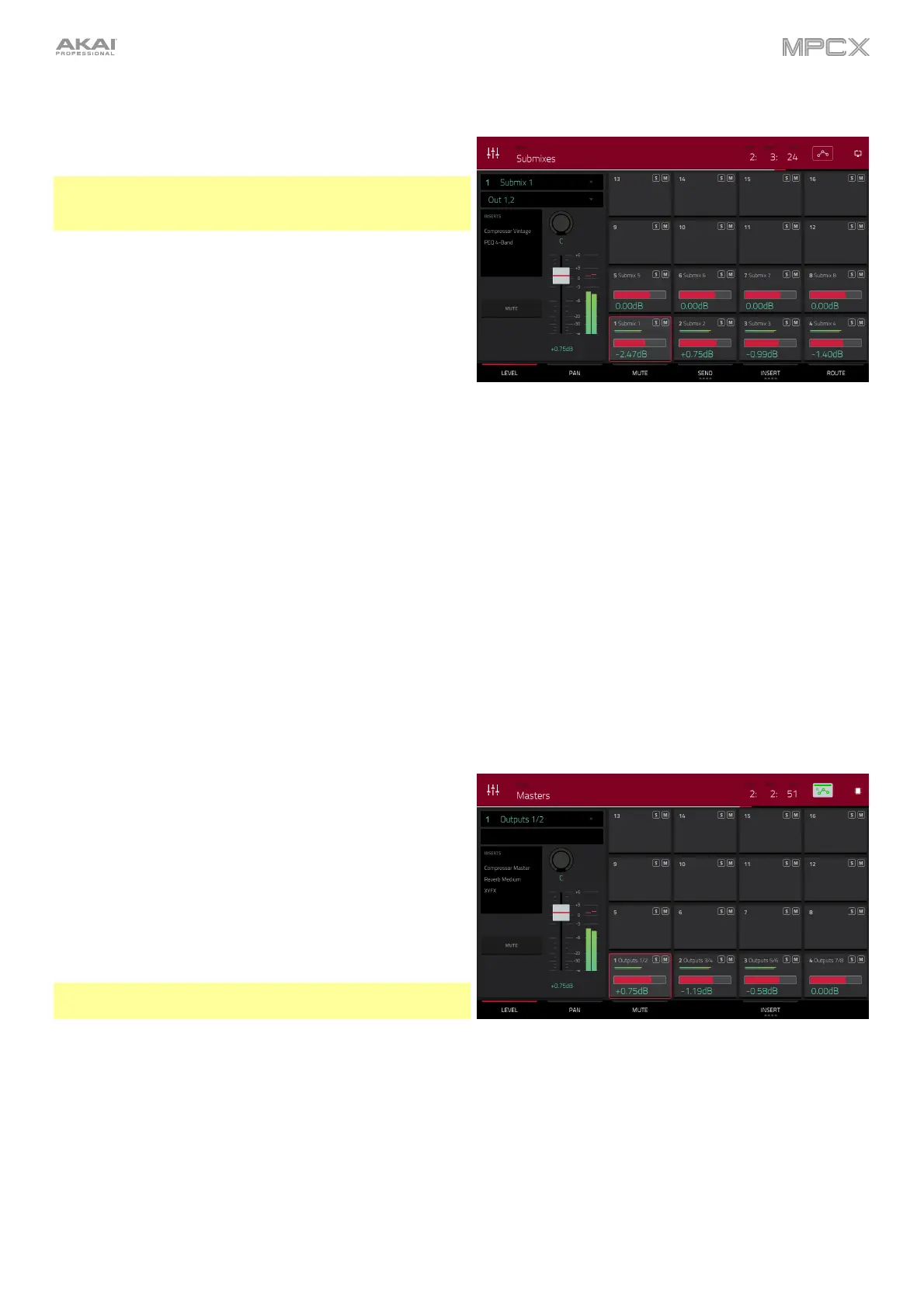 Important: Submixes are available only while using MPC X