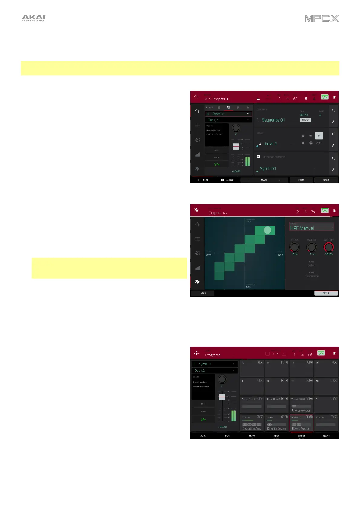 Note: In XYFX Mode, the effects act like a single insert effect on that program. In fact, XYFX is the name of the insert