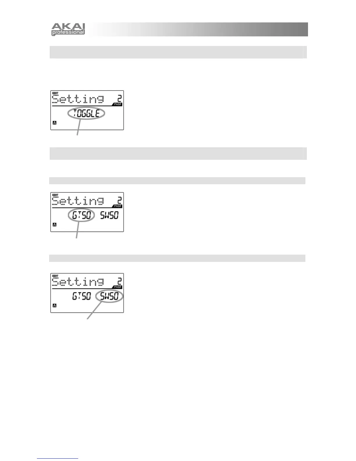 The following parameters can be adjusted if you select “GATE SWING” on Page 1.
