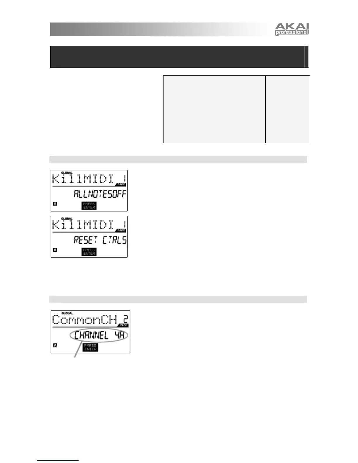 1. Press [GLOBAL] button to enter Global Mode. Kill MIDI will be