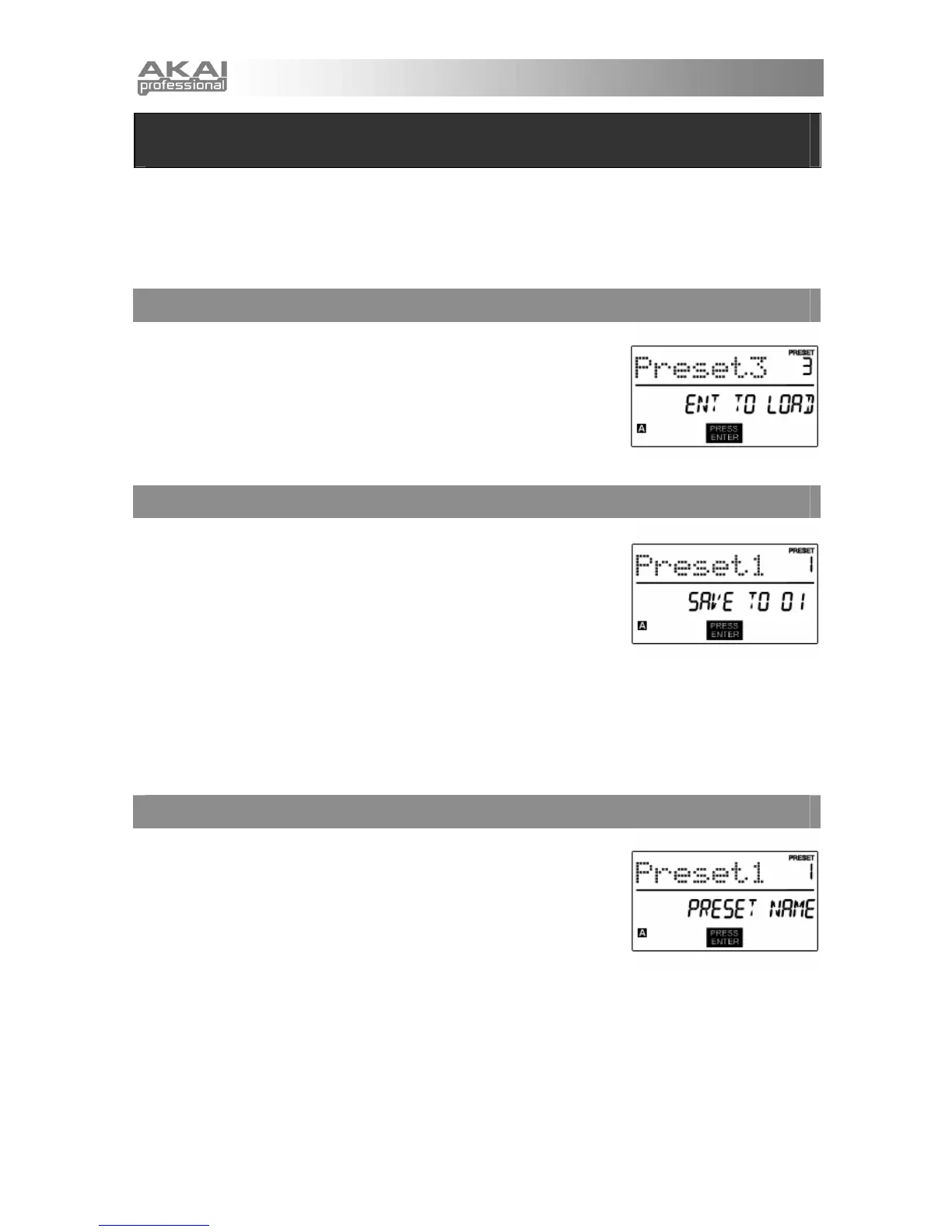 bis im Display ‘Preset Name’ angezeigt wird.