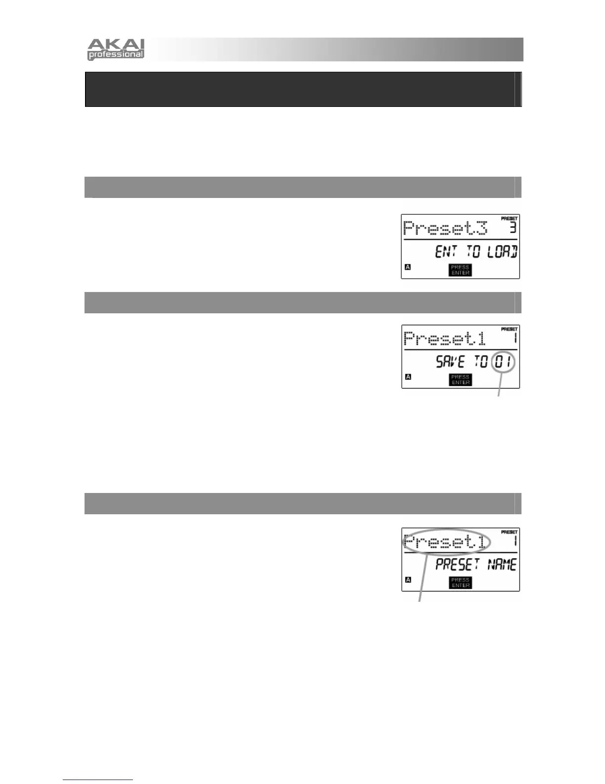 1. To name or rename the Preset, press the [>] button until you see ‘Preset