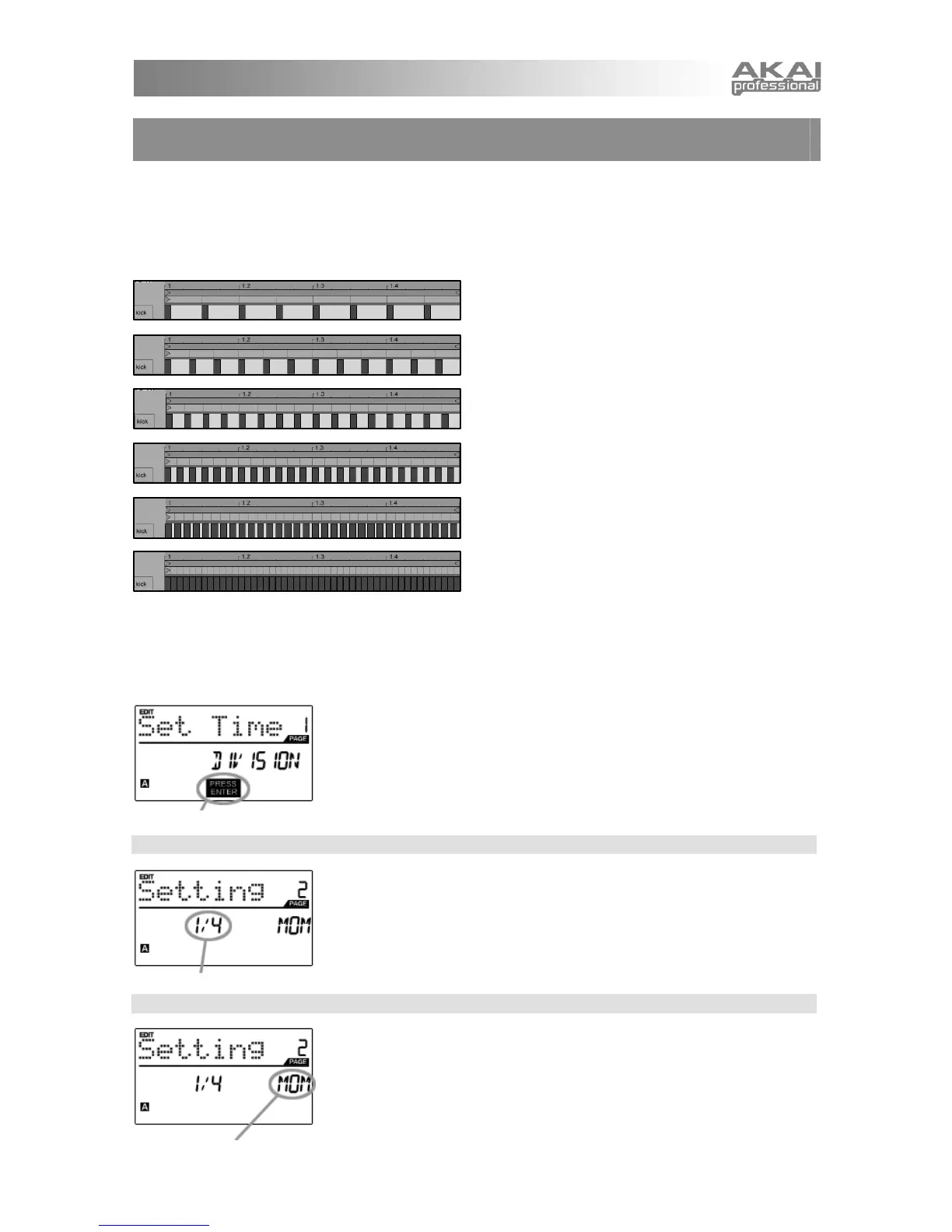 The Time Division feature works in conjunction with Note Repeat and the Arpeggiator. When Note Repeat or