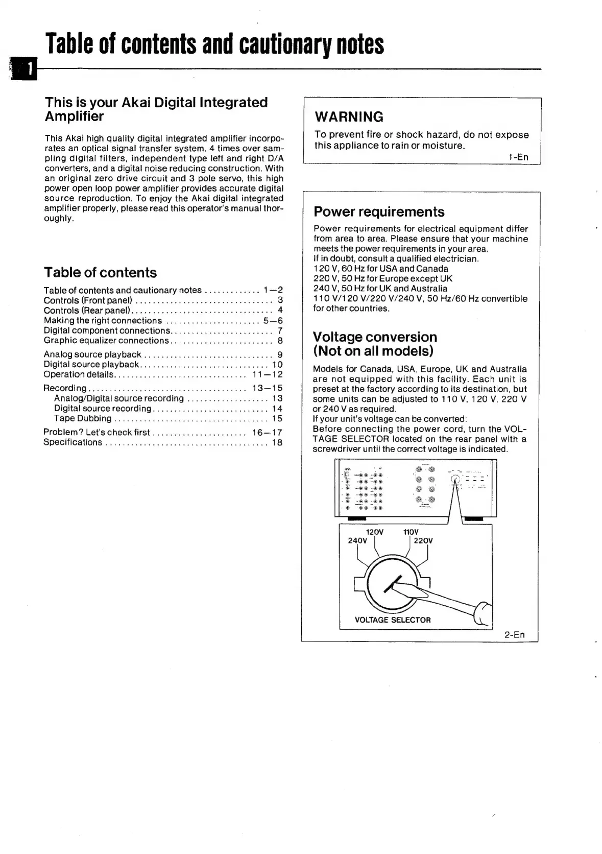 Akai Reference Master AM-73 - Table of Contents; Table of Contents and Cautionary Notes