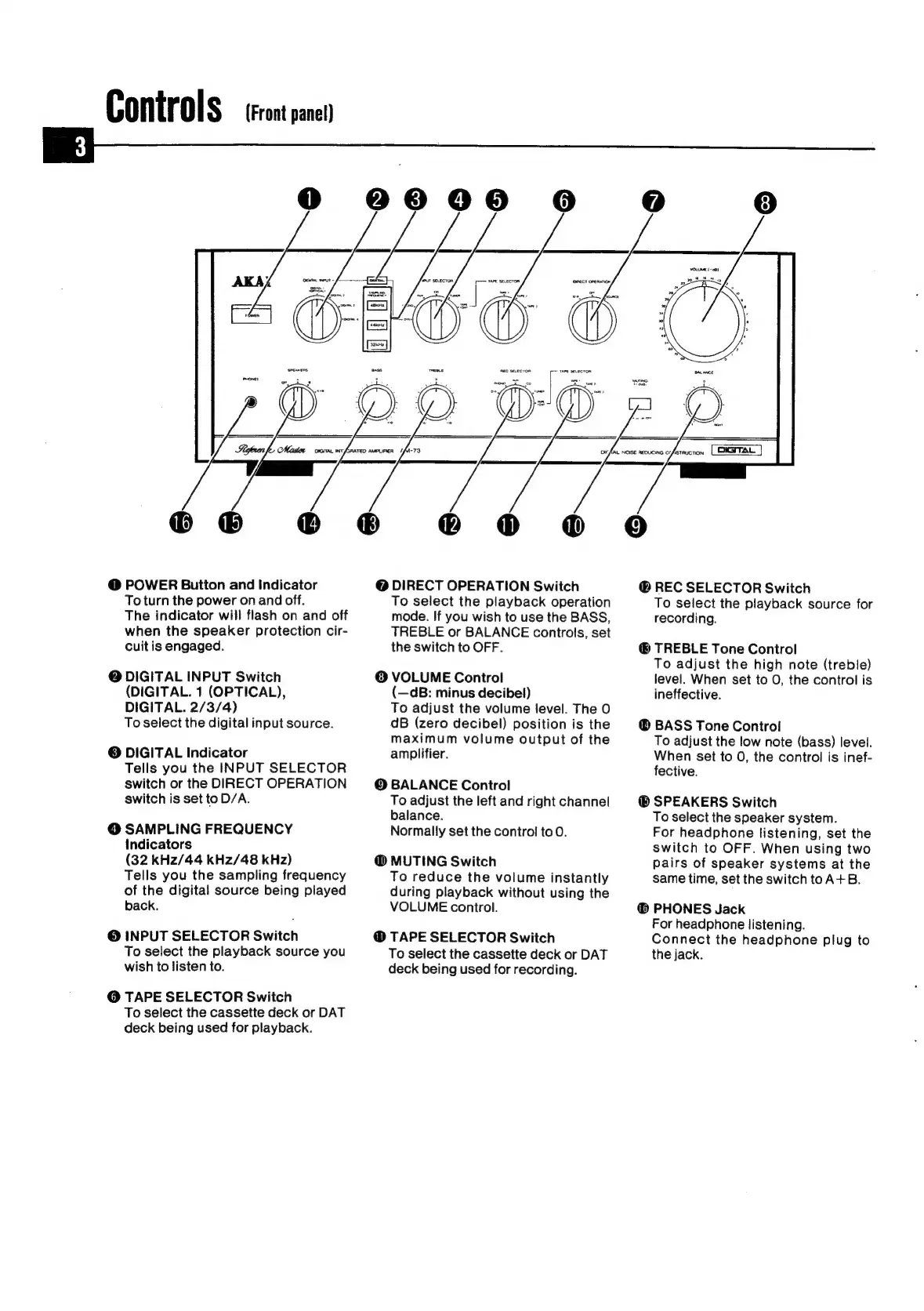 Akai Reference Master AM-73 - Controls (Front Panel)