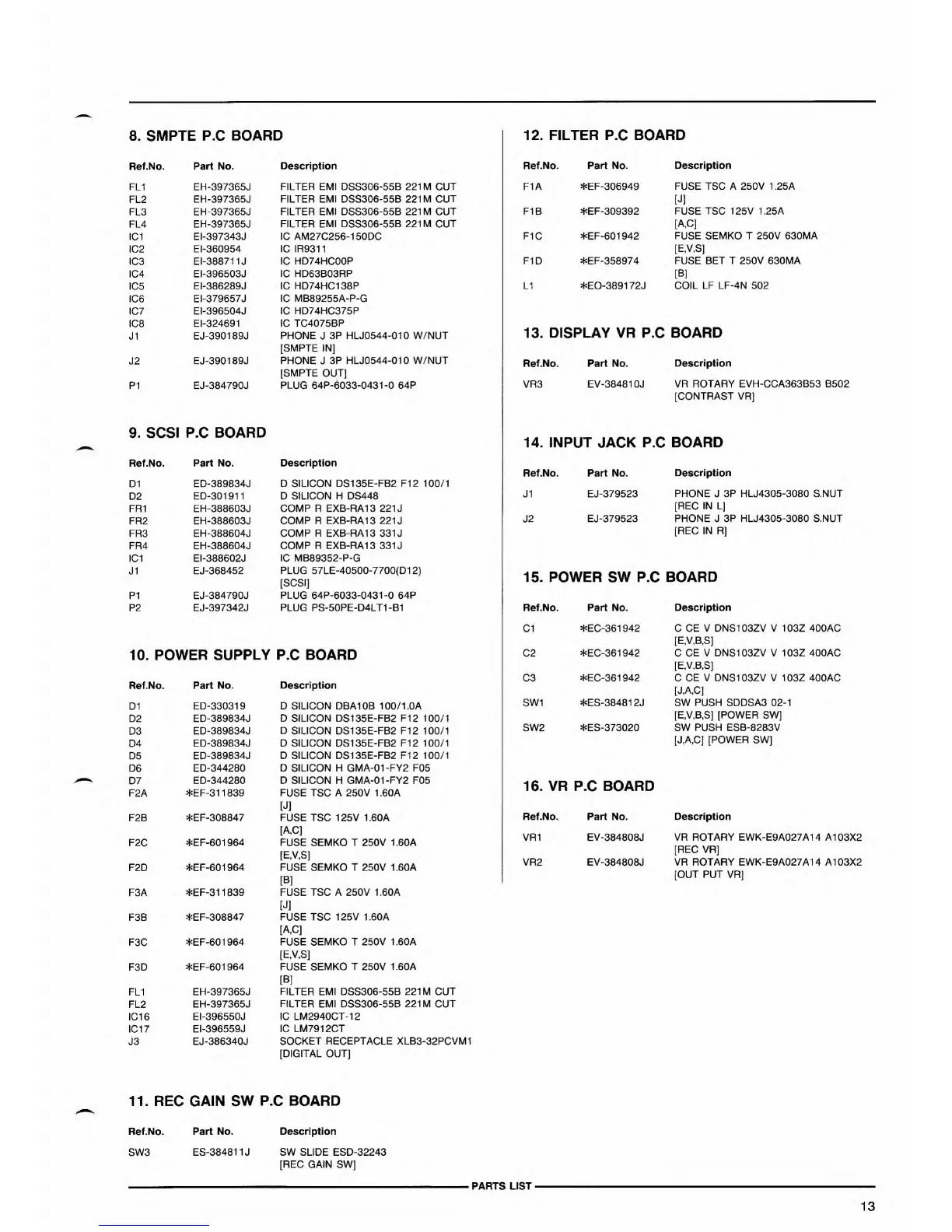 PARTS LIST