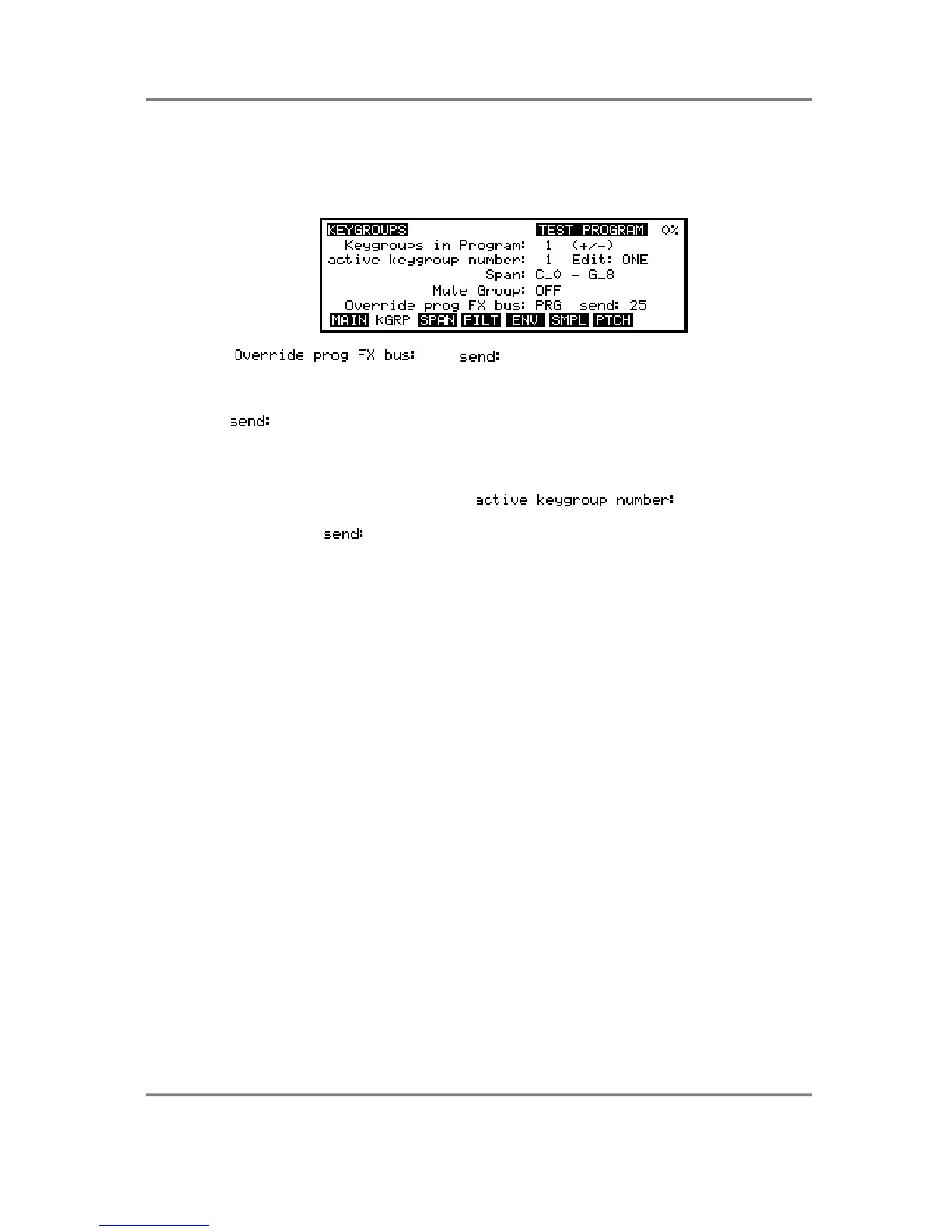 keygroups to the effects by overriding the main program’s effects routing. The default will