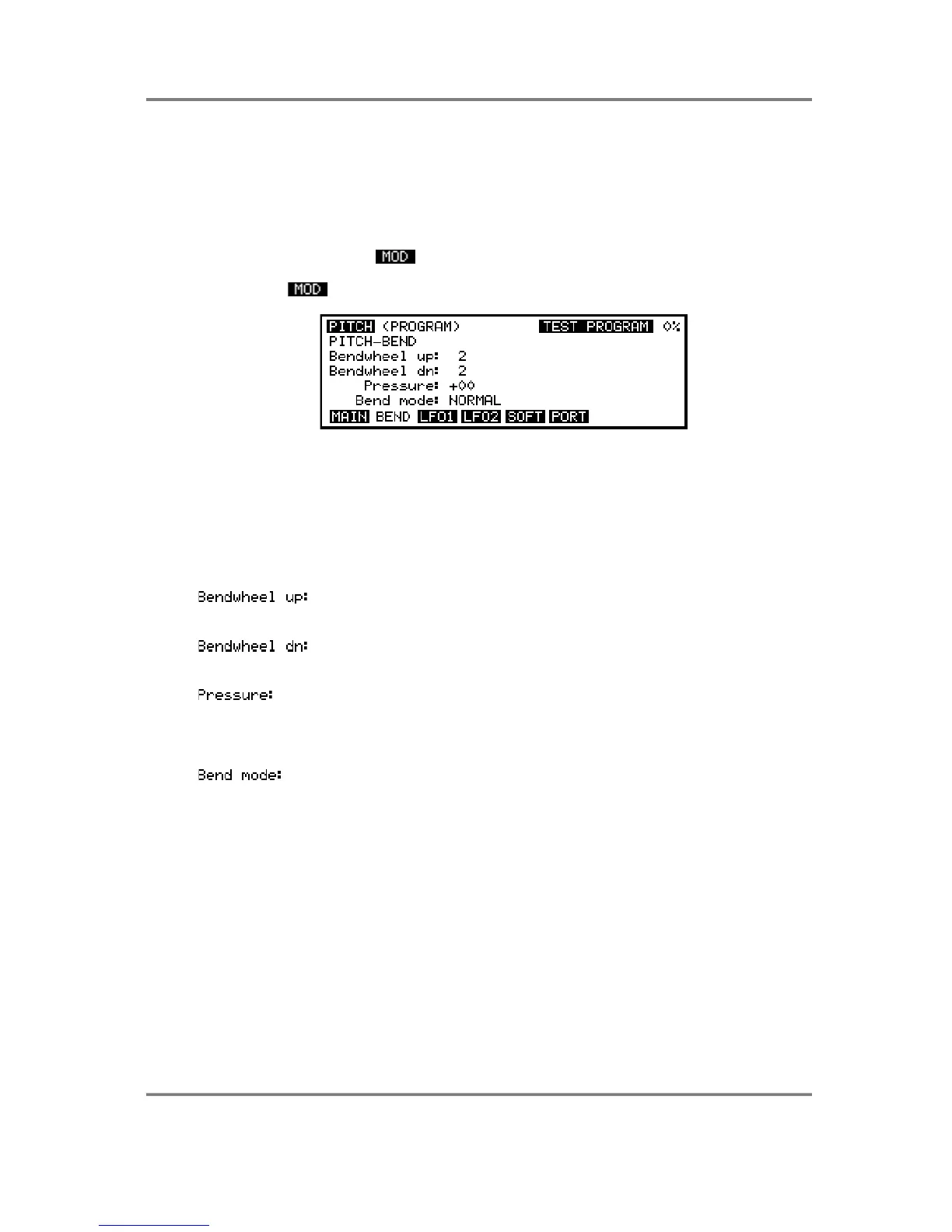 may set the parameters for the two low frequency oscillators and the pitch bend. You may