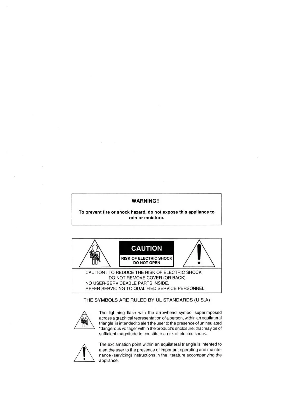 CAUTION : TO REDUCE THE RISK OF ELECTRIC SHOCK,