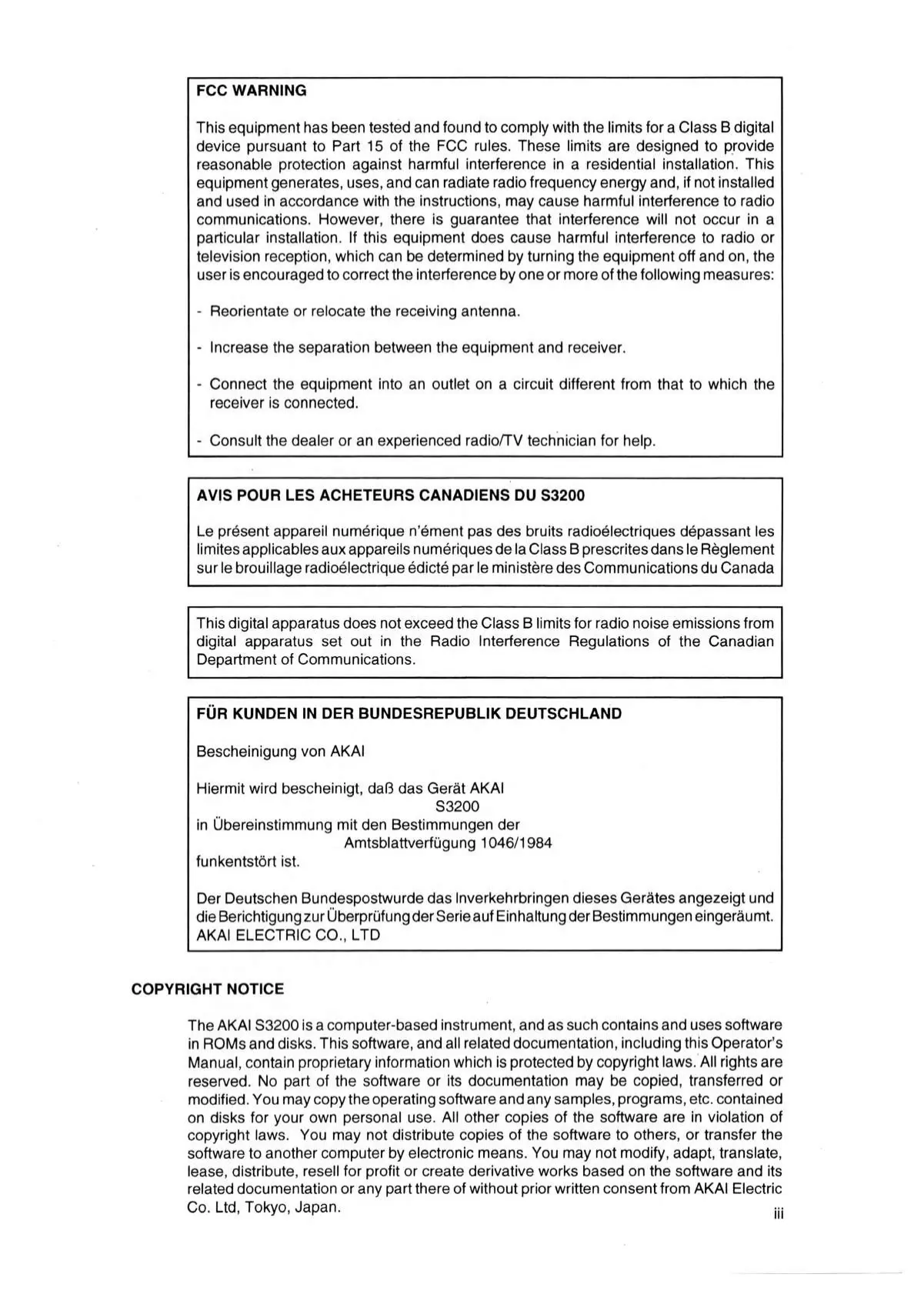 related documentation or any part there of without prior written consent from AKAI Electric
