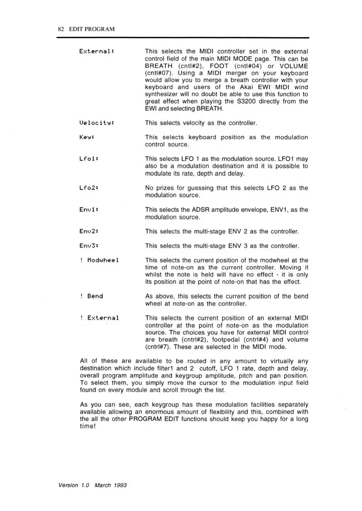 overall program amplitude and keygroup amplitude, pitch and pan position.