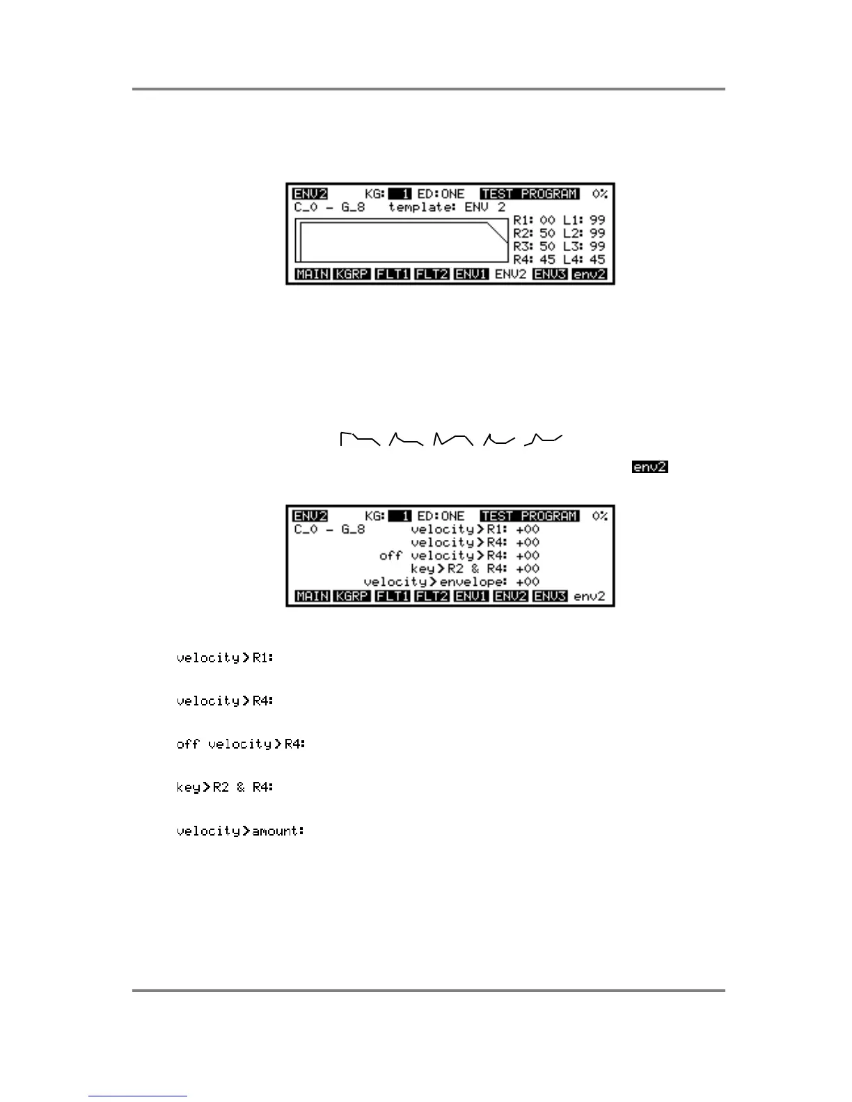 Access to ENV2 is also via the KGRP or FILT page. However you arrive there, the screen looks
