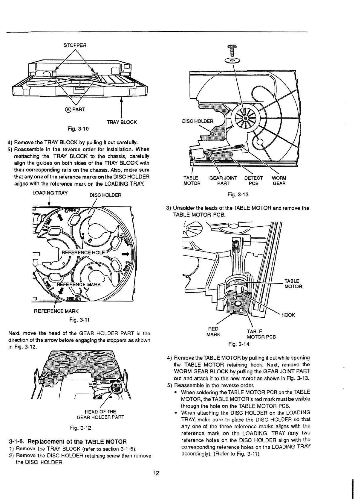 4) Remove the TABLE MOTOR by pulling it out while opening