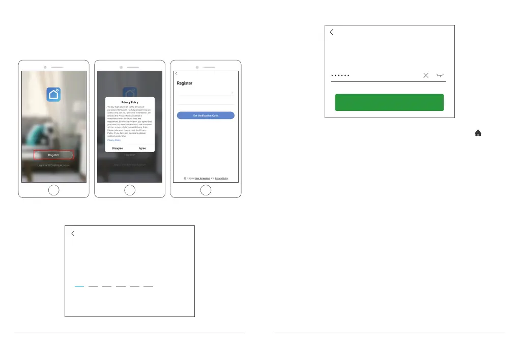 ① Open “Smart Life” app to click “Register → Agree”. Choose country/region, fill in