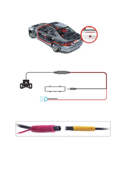 the red trigger cable of rear camera extension cable to the positive lead of the car