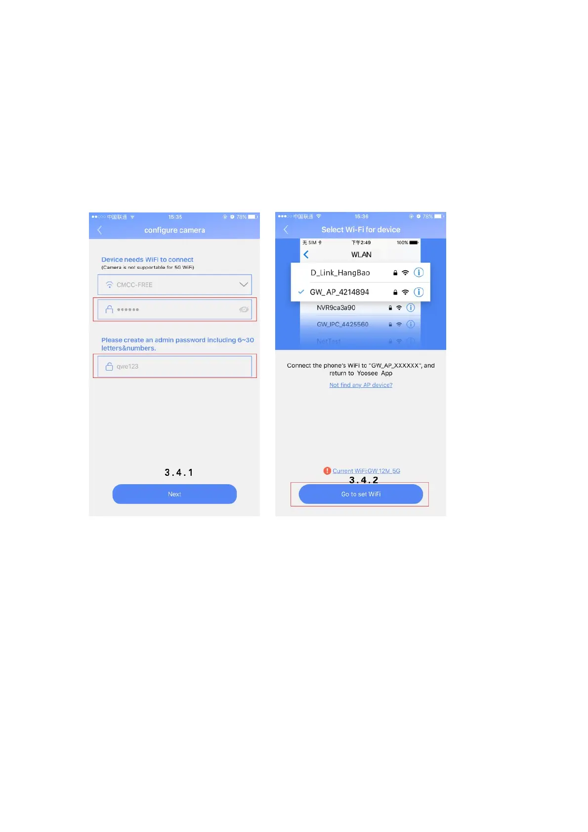 Select AP connectioninput the Wi-Fi password asked by device and create visiting