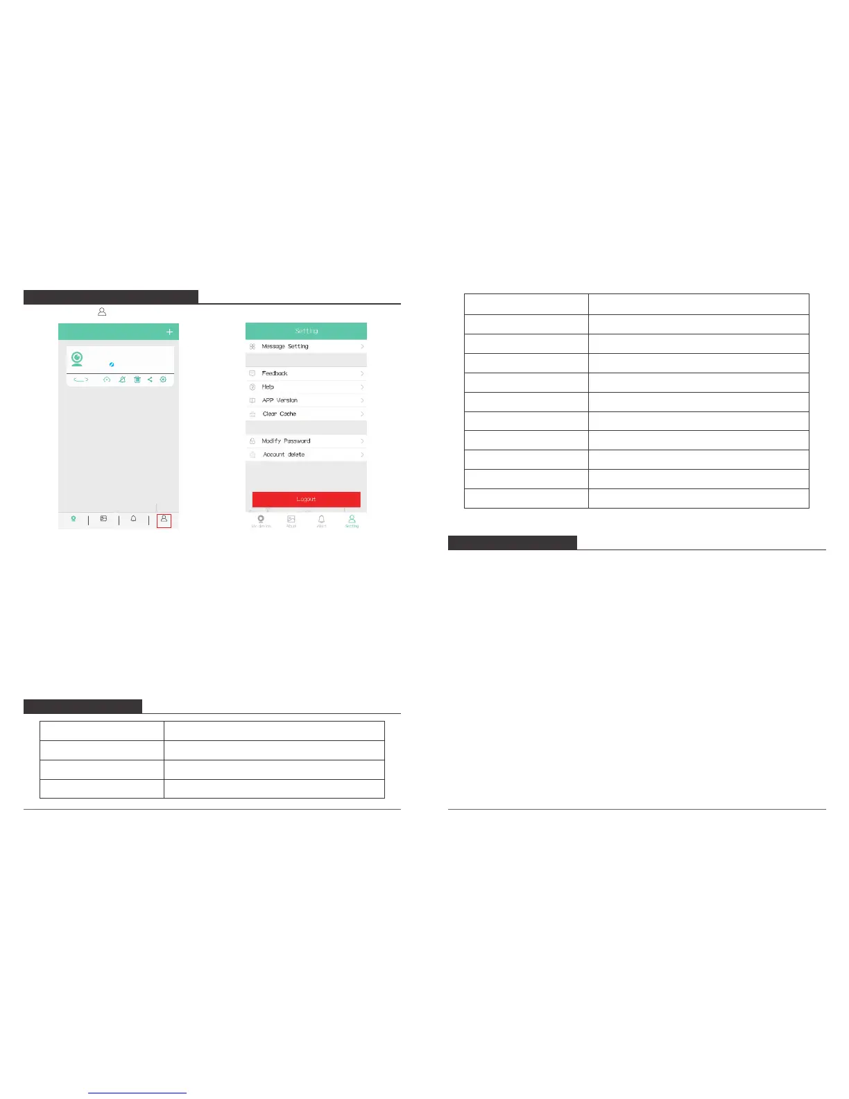 Modify password: Change the account’s password of Phone APP. In Setting interface, click