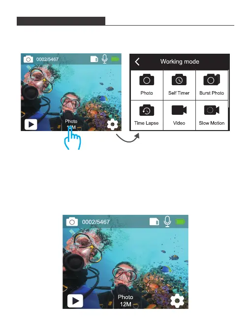Press the Mode button or tap the shooting mode area on the screen to switch to