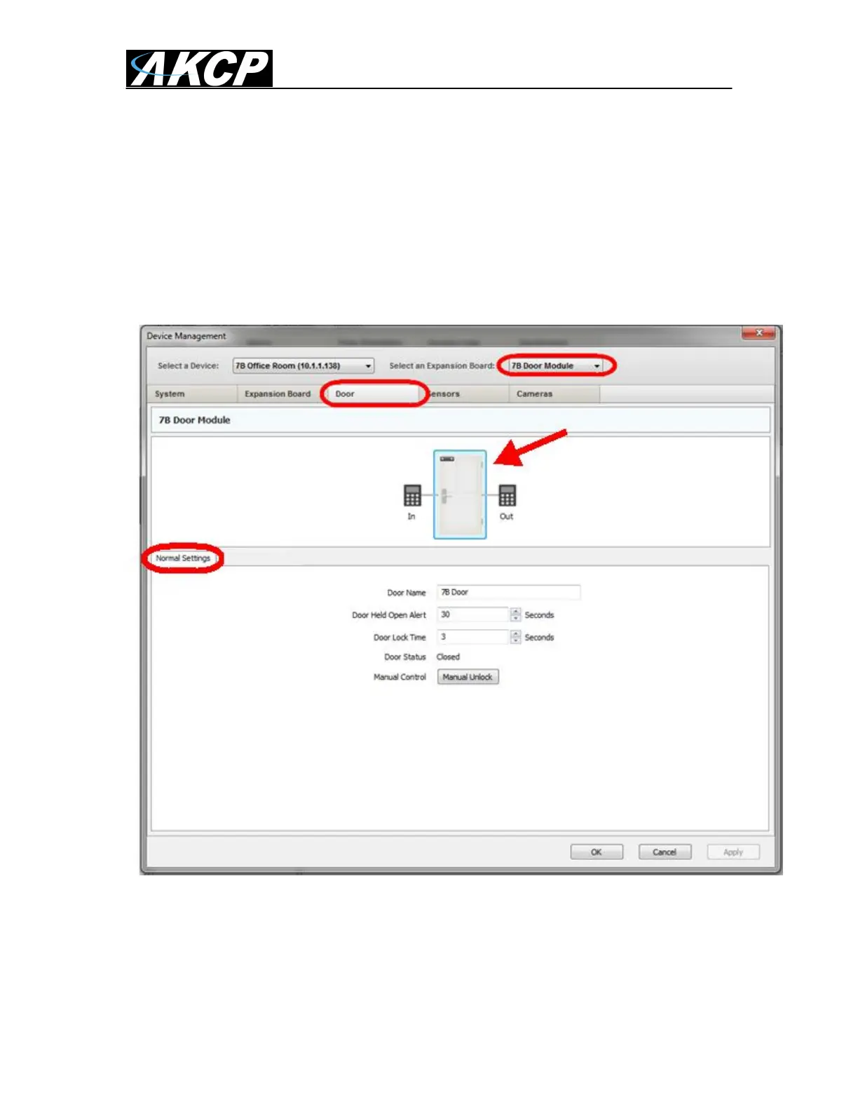 The Door tab is where we will setup the DCU to control the door lock, the card and finger