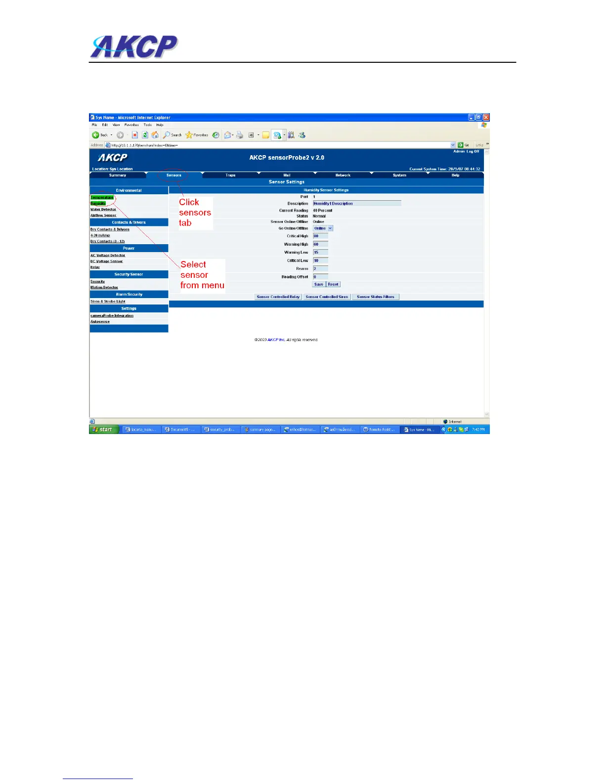 In this example we have selected the humidity sensor from the sensor menu on the left. The