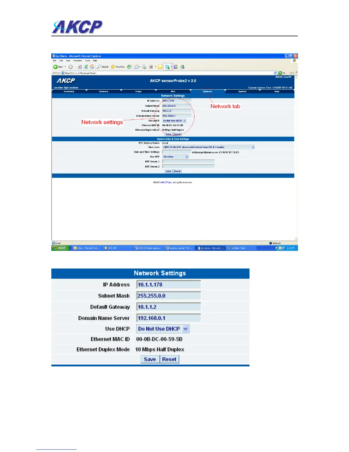 b) Once on this page you can setup the network settings as indicated below :-
