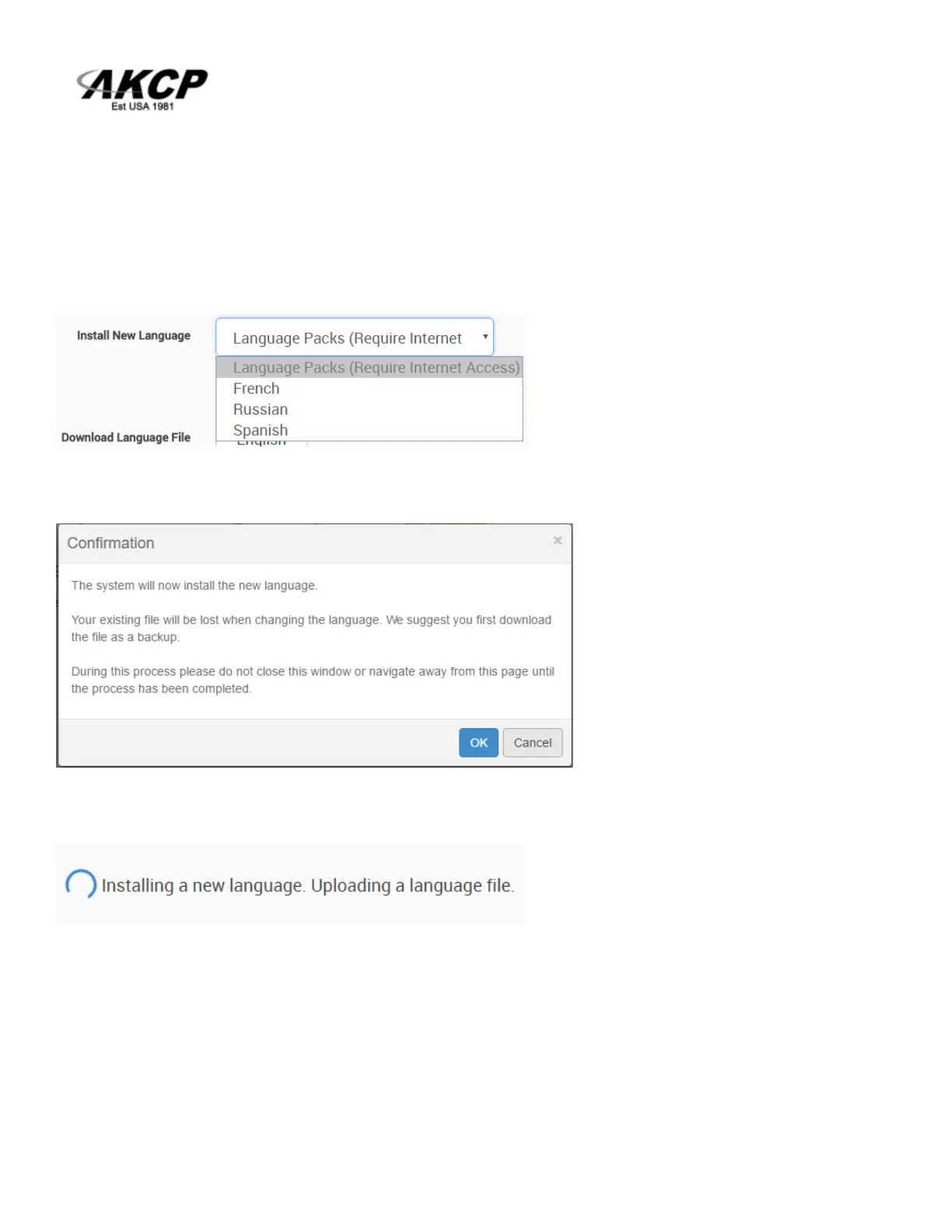 If you have active internet connection, the unit supports installing the official language files directly