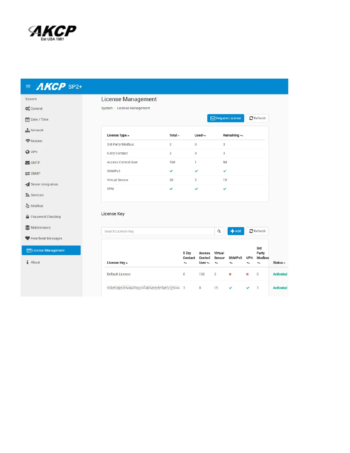 For example you can request SNMPv3 license by clicking on the Request License button.