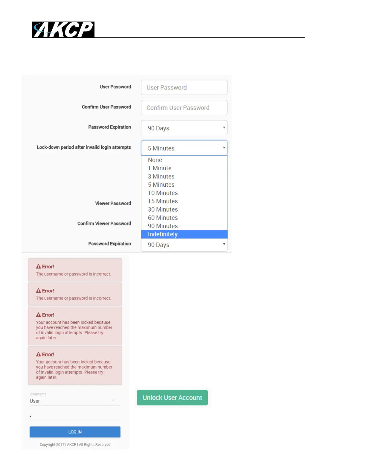 Note that for the Admin user, you can‟t select “indefinitely” as this