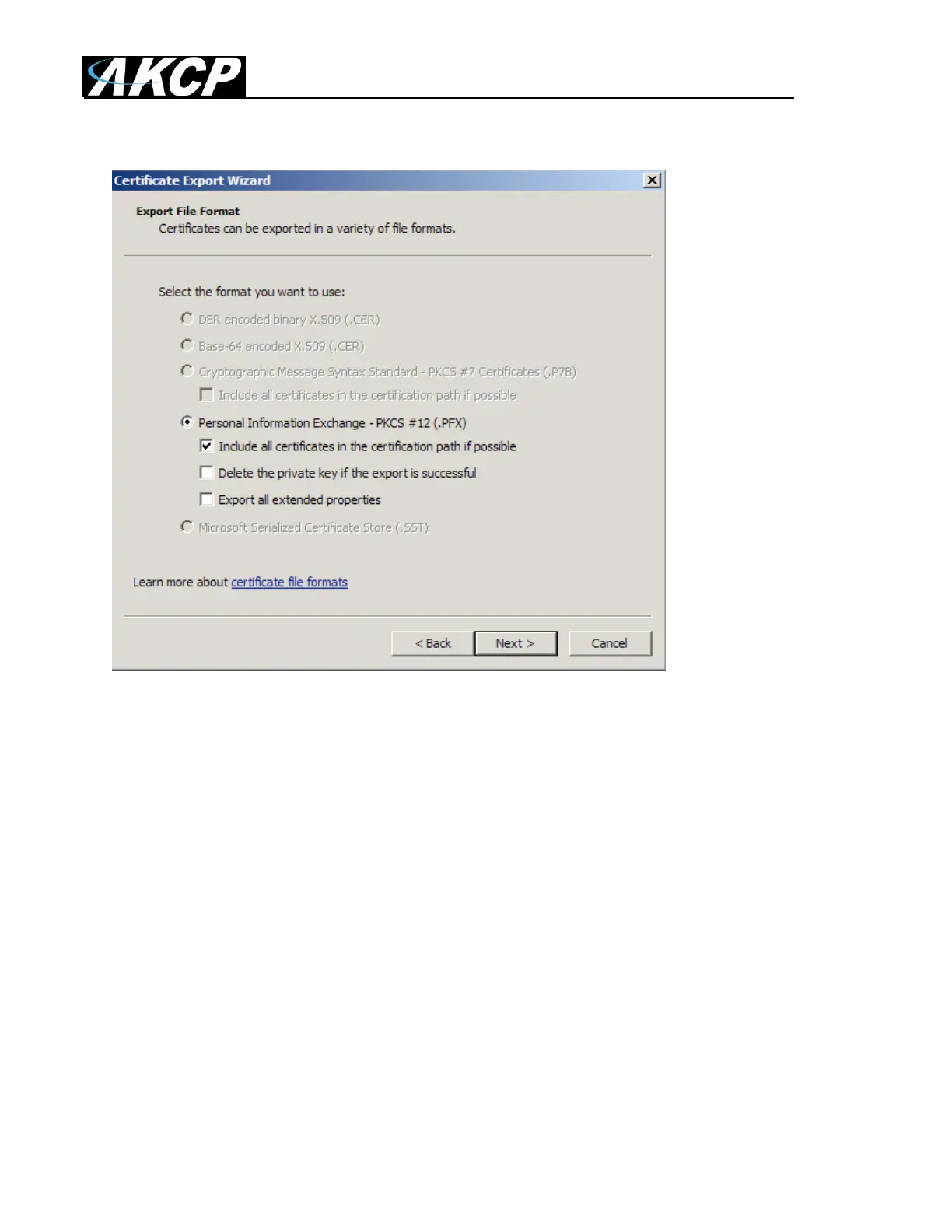 6. Choose to “Include all certificates in certificate path if possible.” (do NOT select the delete