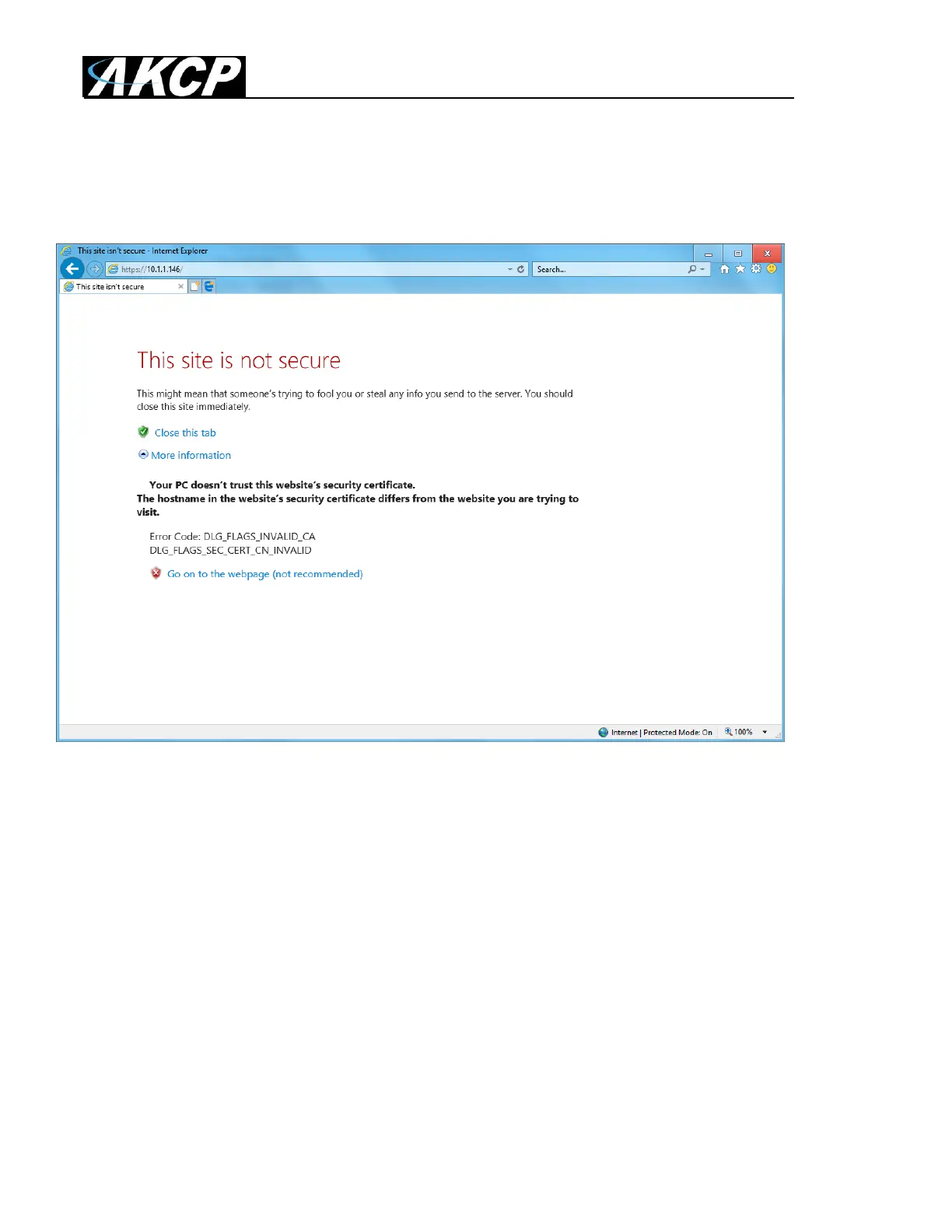 browser warning upon opening the Web UI about an incorrect certificate. This is normal and you