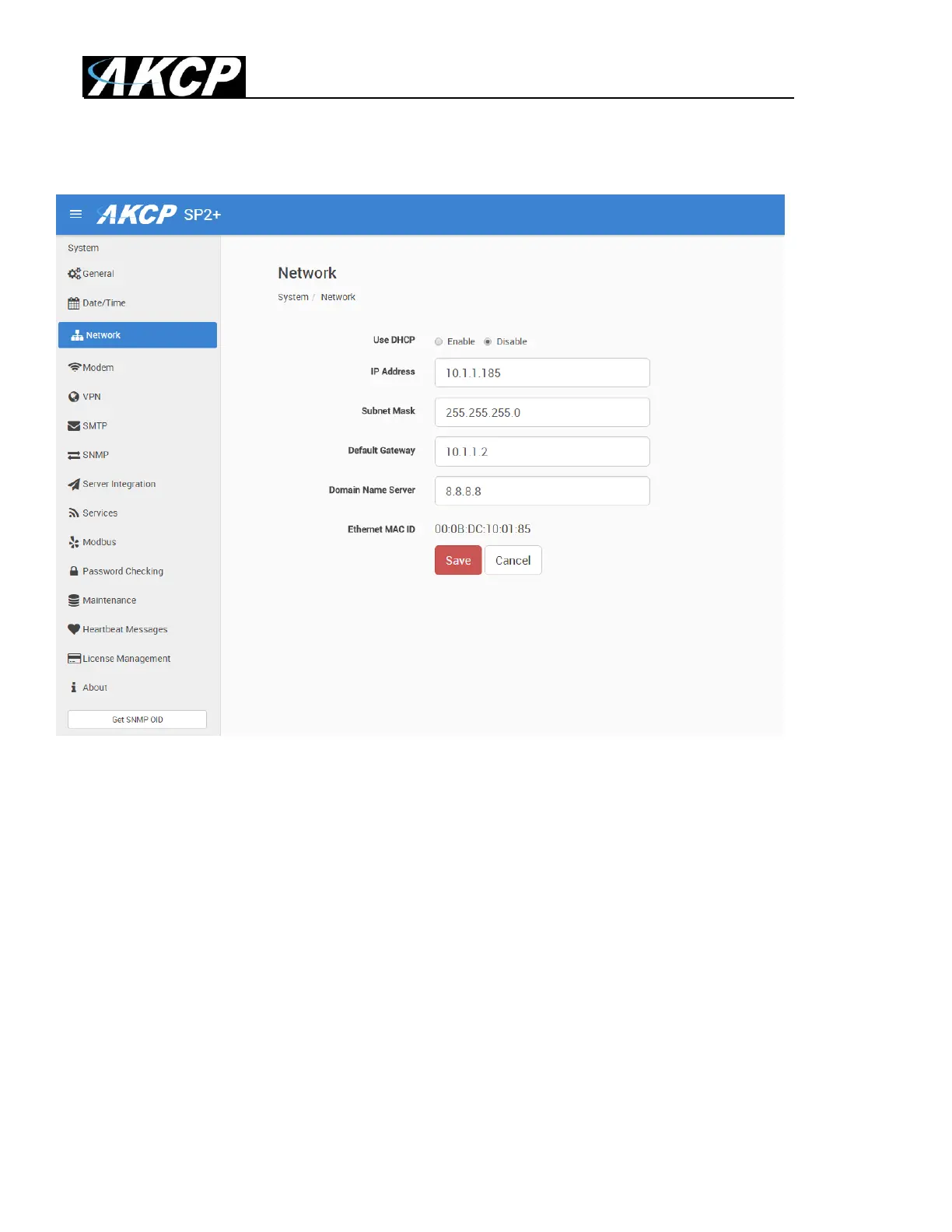 The unit’s MAC ID is displayed here, and all user configurable options for IPv4 with fixed IP or DHCP