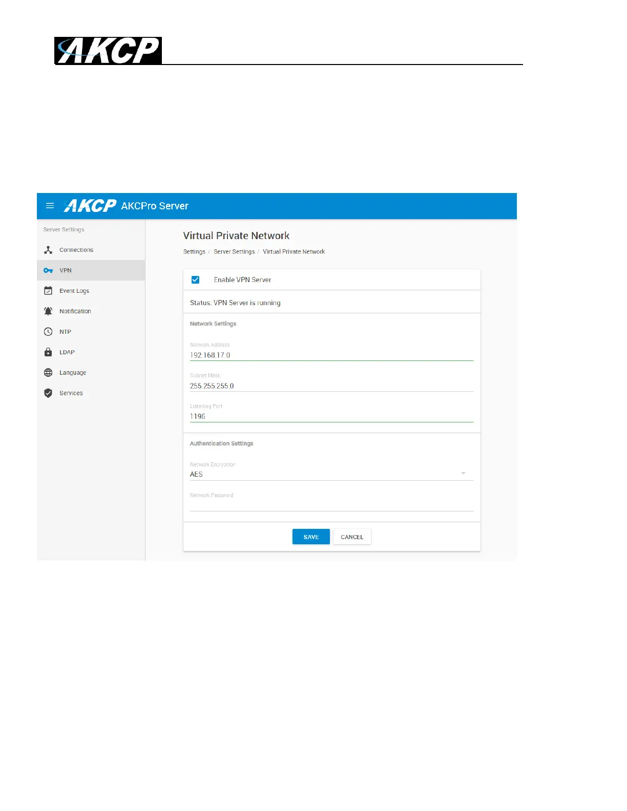 Enable the VPN Server by clicking on the checkbox, and then change the Network Password in