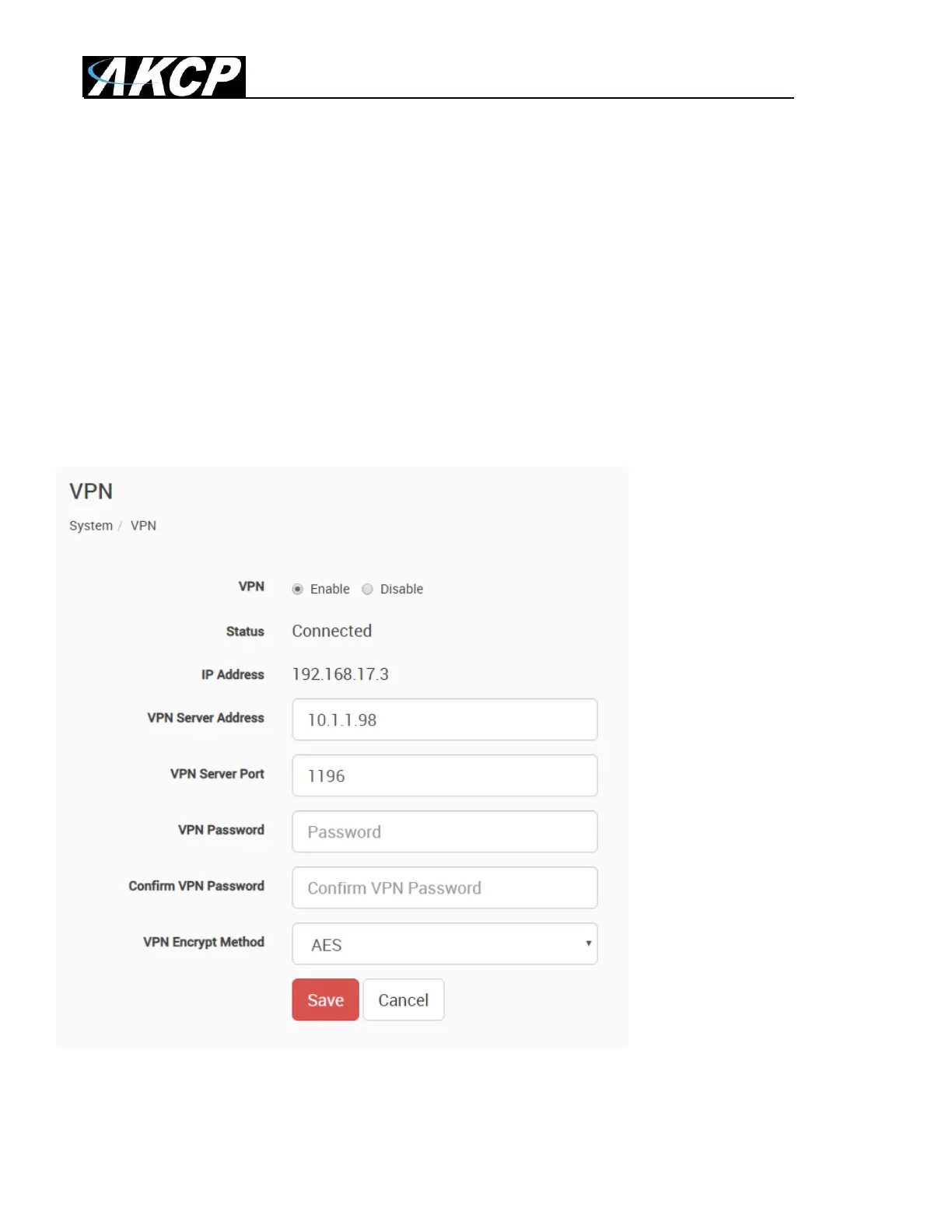 - Specify the AKCPro Server's IP or DNS name in VPN Server Address