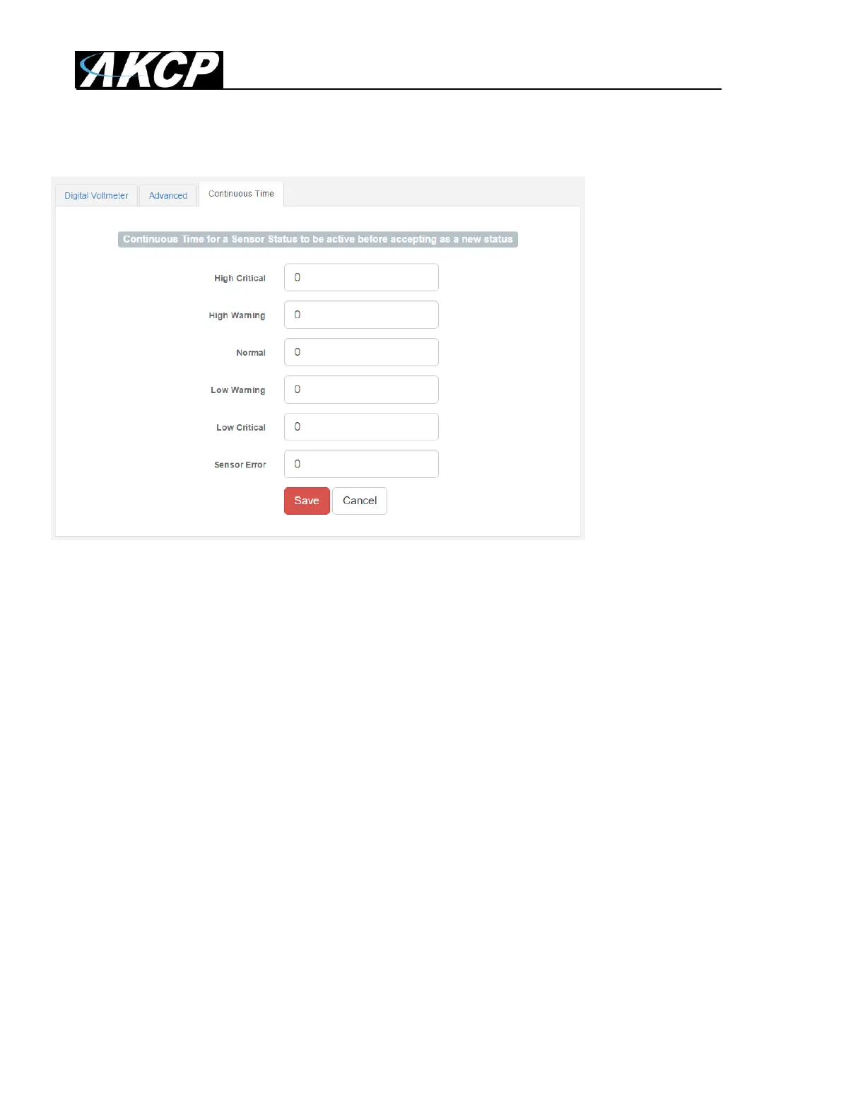 warning to high critical. Enter the time in seconds and press the “Save” button. The amount of time