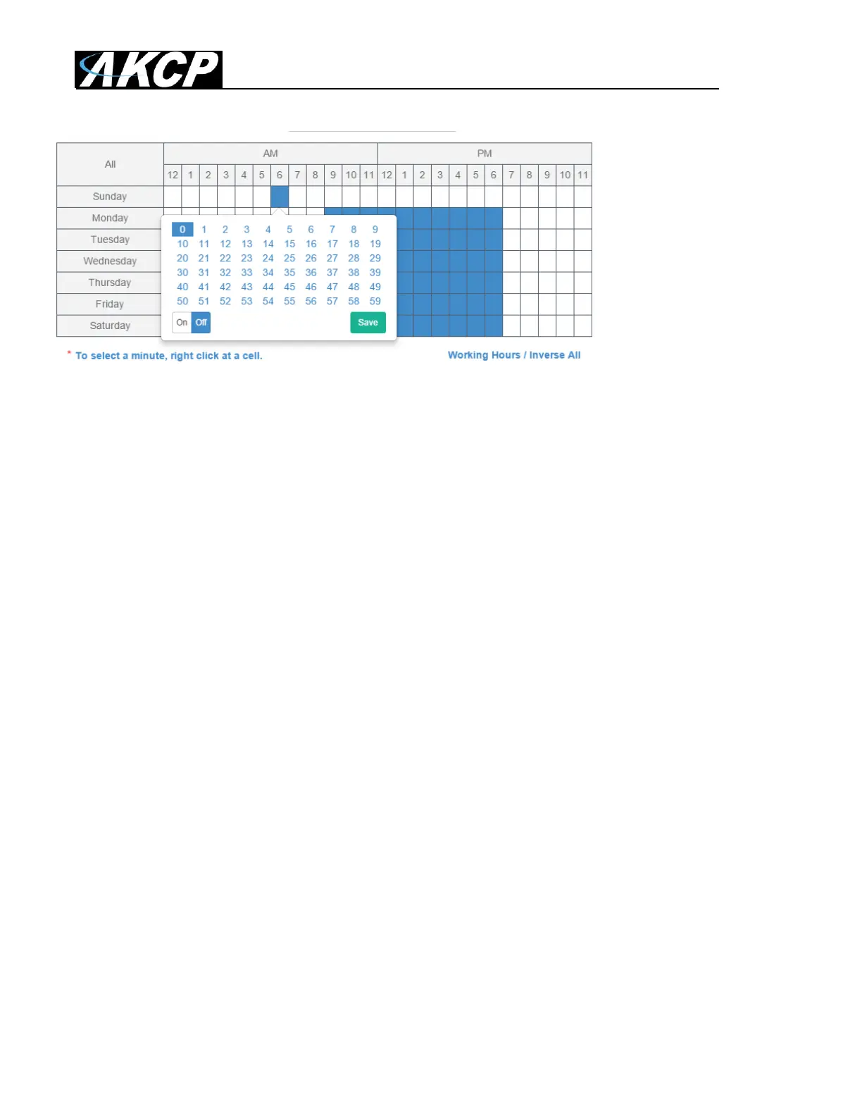 You can quickly select the Working Hours only, and specify a custom schedule down to minutes by