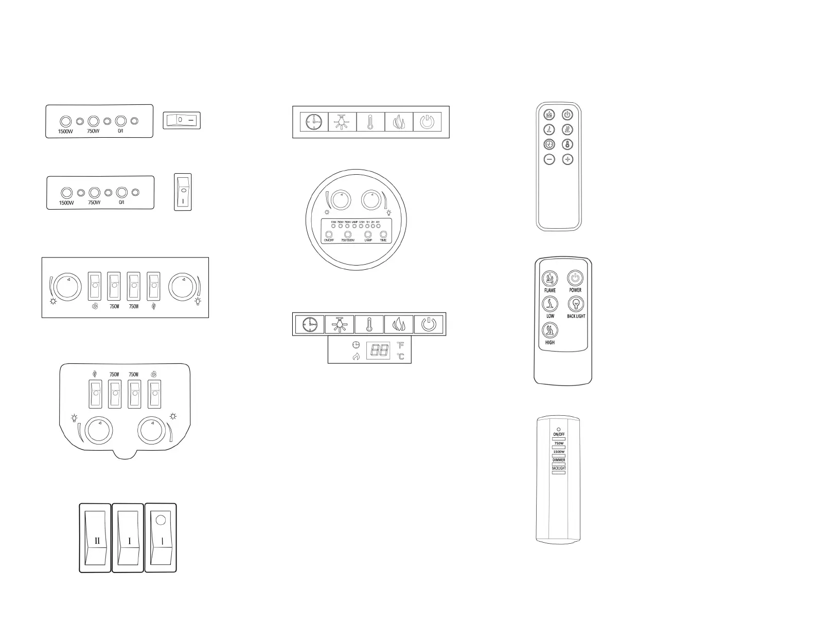 Flame ON/OFF: Turns on/off the flames and backlight