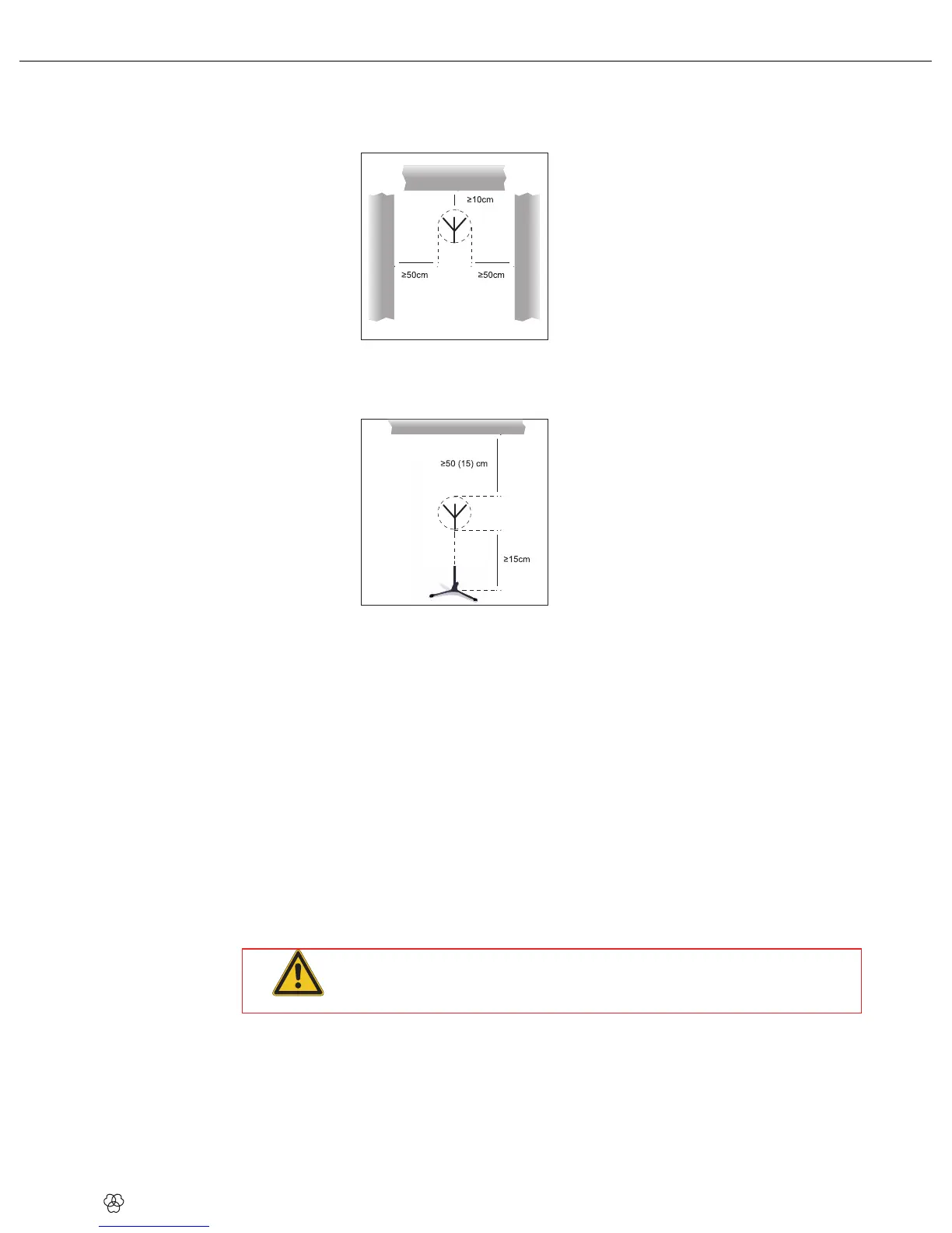 If you mount your antennas on a wall or ceiling, be sure to keep the following minimum