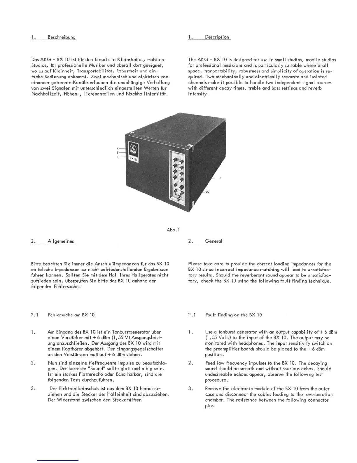 AKG BX 10 - Beschreibung; Allgemeines; Fehlersuche am BX 10