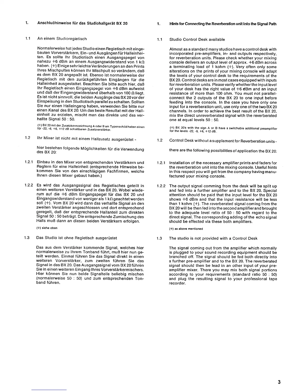 AKG BX20 - Connecting the BX 20 Studio Reverb Unit; Connecting to a Studio Control Desk; Mixer Lacks Reverb Unit; Studio Lacks Control Desk