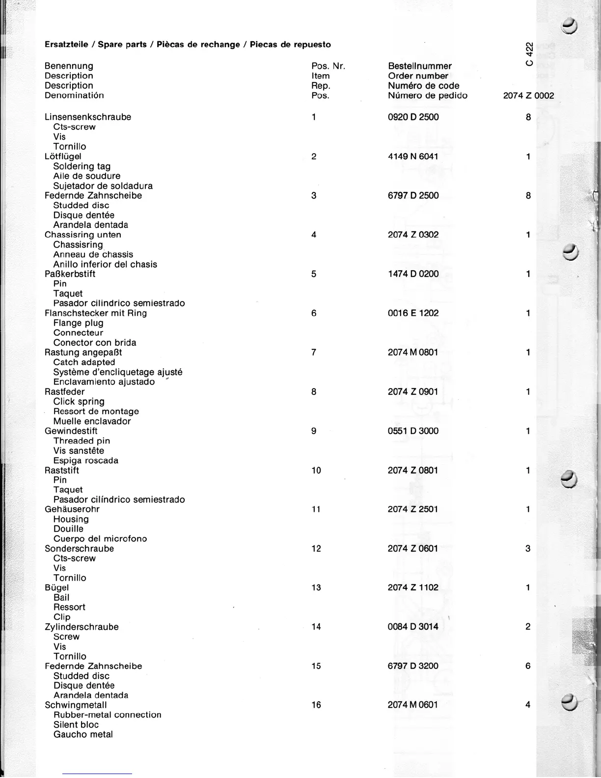 AKG C 422 - Spare Parts List