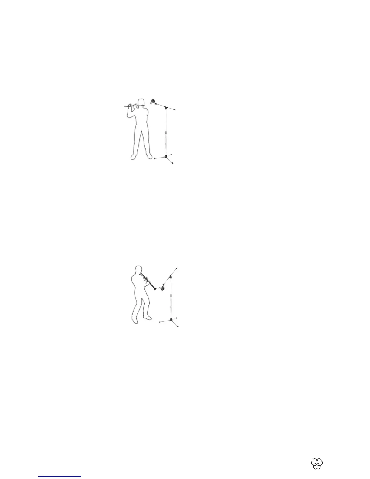 Place mic 1 above and to one side of the player (to reduce blowing noise) and