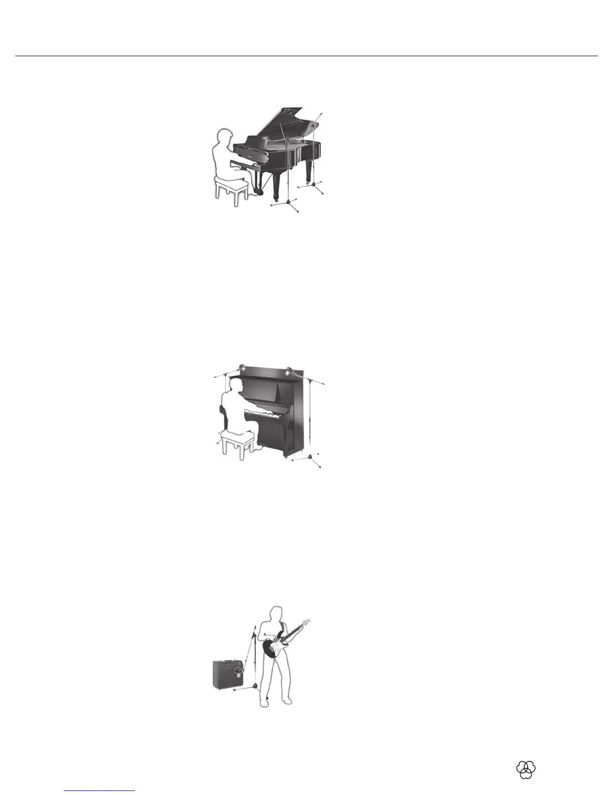 above the strings. Align mic 1 with the treble strings and mic 2 with the bass