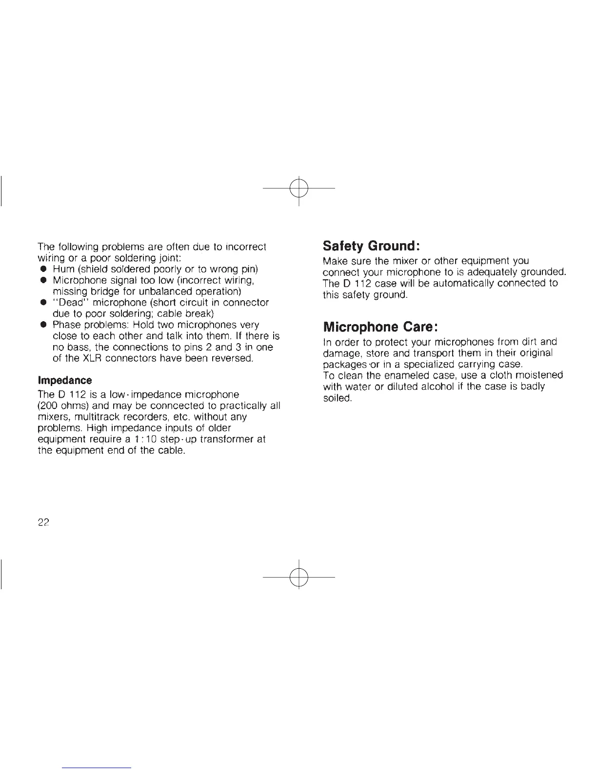 AKG D 112 - AKG D112 Wiring and Soldering Troubleshooting; AKG D112 Impedance, Grounding, and Care