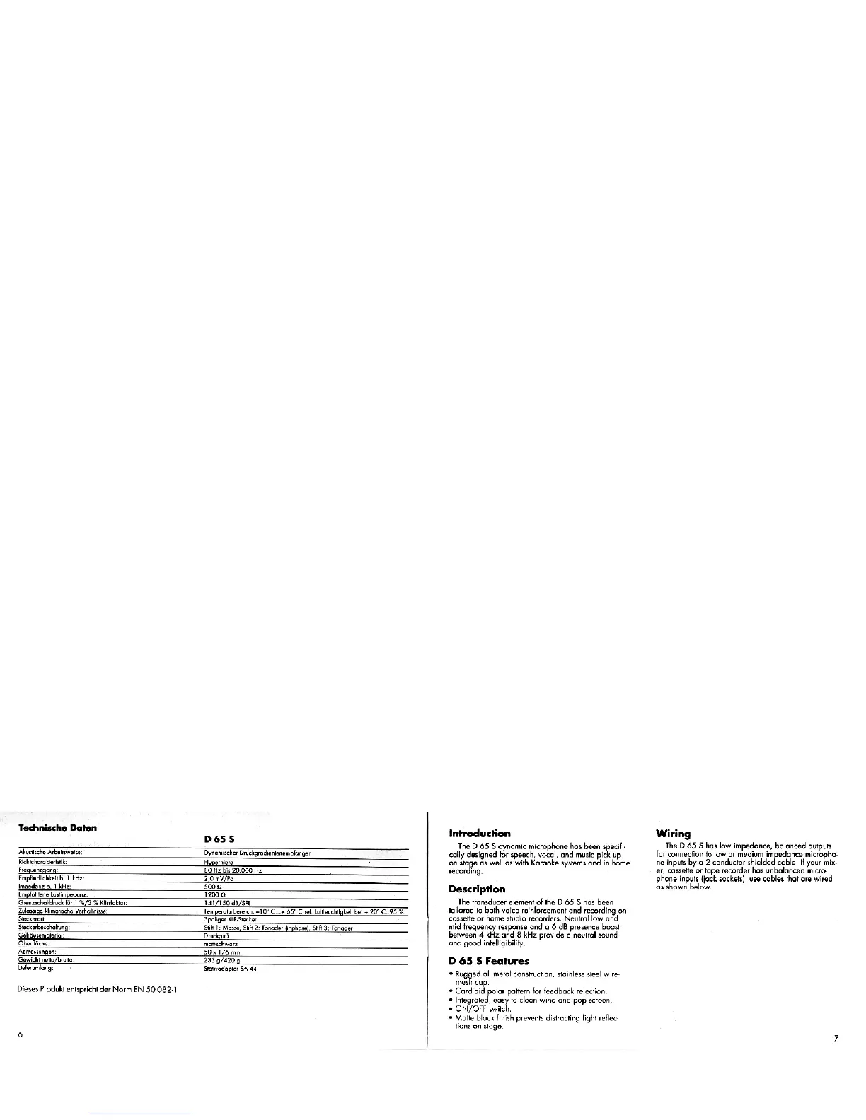 AKG D 65 S - Technical Data; Acoustic Working Method; Polar Pattern; Frequency Response