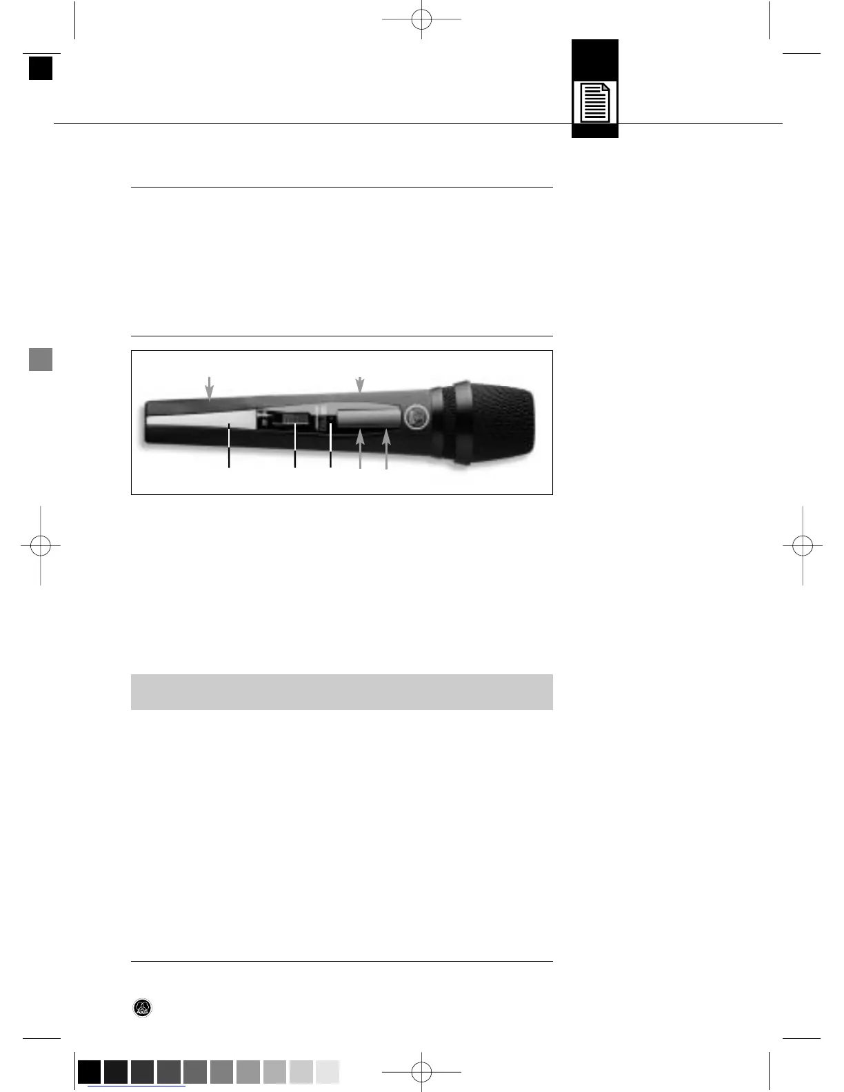 A cabeça do microfone fixamente ligada ao emissor possui um transdutor AKG de alta qua-