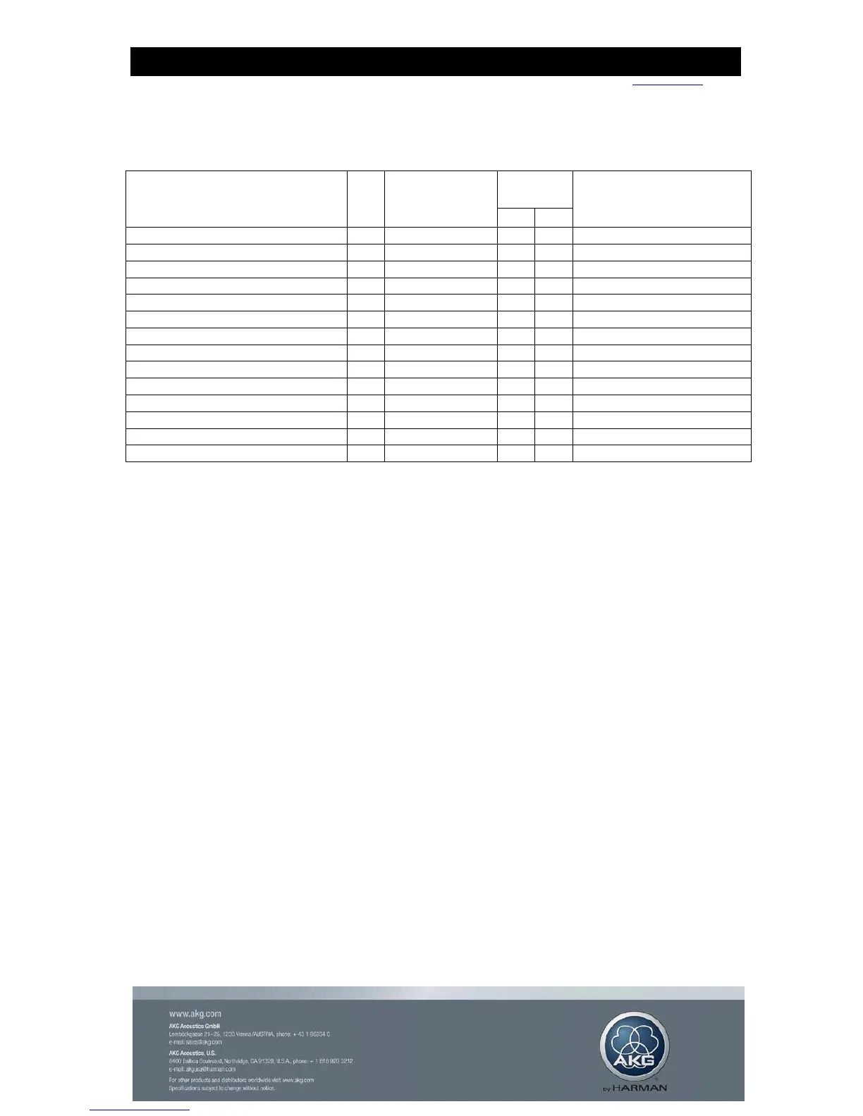 AKG Service Department, Lemböckgasse 21-25, A-1230 Wien, Austria.Tel.: (431)86654-0, FAX: (431)86654-1514, e-mail: service@akg.com 11/11
