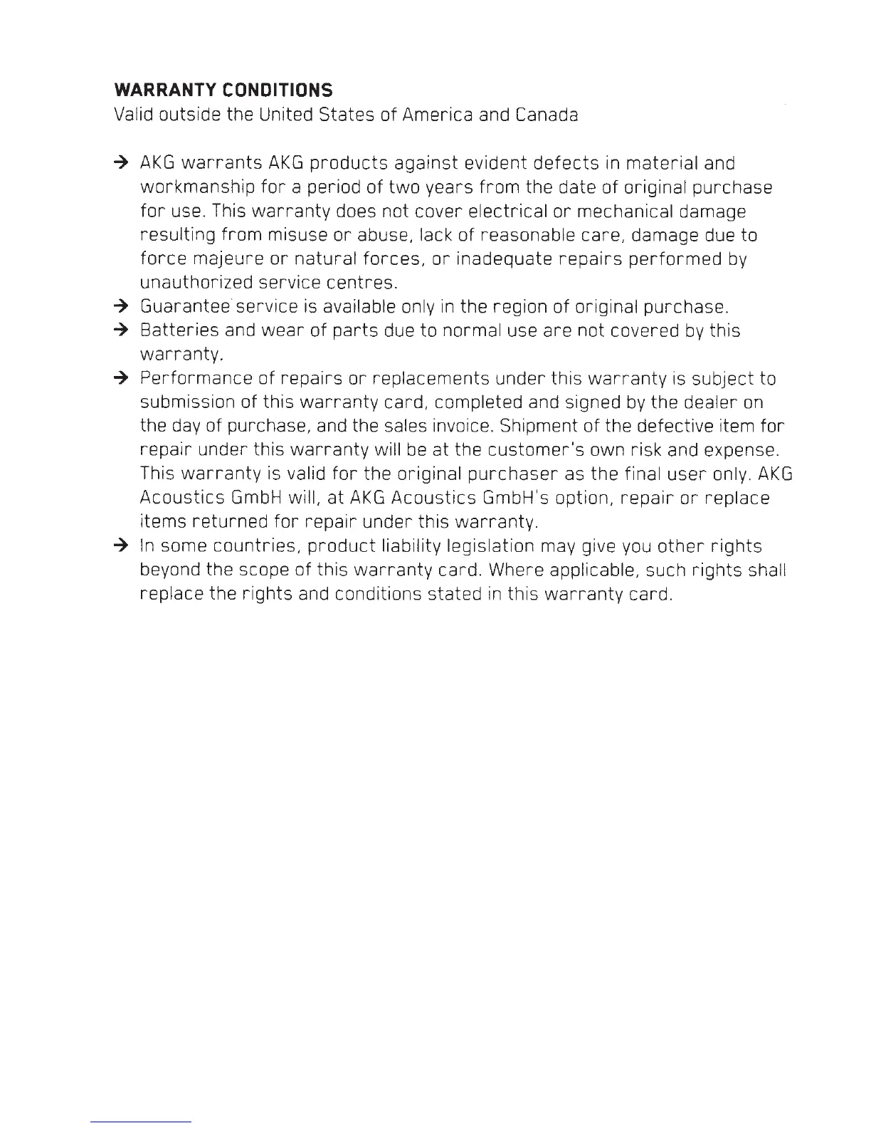 AKG K495 NC - Warranty Conditions (Outside US & Canada)