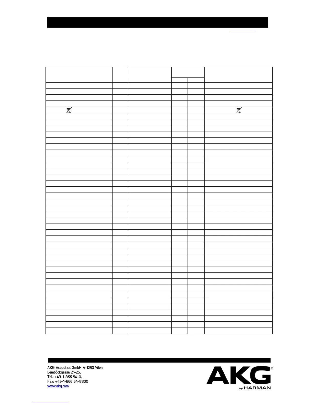 AKG Service Department, Lemböckgasse 21-25, A-1230 Wien, Austria.Tel.: (431)86654-0, FAX: (431)86654-1514, e-mail: service@akg.com 07/13